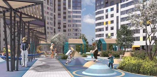 Во дворе без машин обустроены детские и спортивные площадки с резиновым покрытием, зоны отдыха и велодорожки. Для жителей предусмотрены колясочные, кладовые и открытая парковка. В шаговой доступности — лицей №100, детский сад №5 «Олимпик», супермаркеты «Магнит» и «Пятёрочка», Александровский парк с пляжем и экозона Свияжская лесопарк.